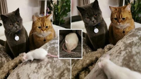 สาวทาสแมวช่วยหนูตัวน้อยถูกทิ้ง โดยมีสองพี่เลี้ยงมองตาโต รอต้อนรับด้วยความยินดี