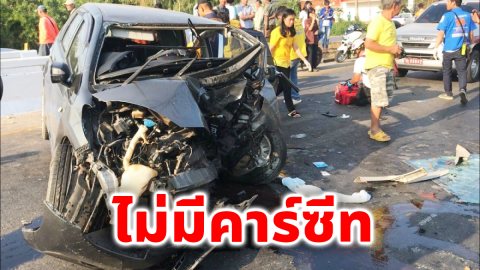 สาวขับเก๋ง เสียหลักพุ่งชนสะพาน ลูกน้อยวัย 1 ขวบ กระเด็นออกนอกรถ