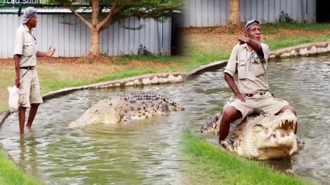 ลุงใจเด็ด โชว์ขี่หลังจระเข้ยักษ์ ทำเอาหวาดlสียว