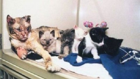 แม่แมวหัวใจแกร่ง วิ่งเข้าตึกที่กำลังไฟไหม้ถึงห้าครั้ง เพื่อช่วยลูกทุกตัวออกจากกองเพลิง