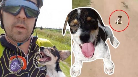 หนุ่มปั่นจักรยานเจอลูกหมาจรจัดกลางทาง น้องกระดิกหางดีใจและยิ้มไม่หุบ