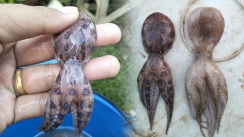 สาวซื้อ ปลาหมึก ที่ตลาดนัดคลองถมมาทาน มีอยู่ตัวหนึ่งสีสันสะดุดตาไม่เข้าพวก