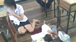 อุ้มลูกเข้าห้องสอบ นักศึกษา กศน.