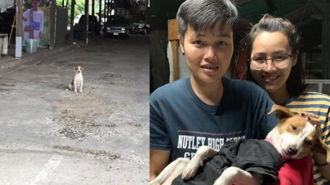 คู่รักใจบุญรับเลี้ยง “แม่หมาท้องแก่” นั่งตรอมใจ คาดถูกทิ้งเพราะ “กำลังมีลูก”
