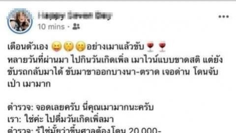 สาวโพสต์ปาร์ตี้เมาหนัก เจอด่านเป่ารอดมาได้