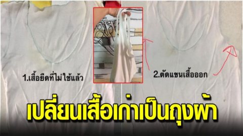 เอาเสื้อยืดเก่า มาทำถุงผ้า เวลาไปช้อปจะได้มีถุงไว้ใส่ของ