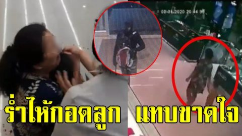 คลิปสุดสะเทือนใจ แม่กอดลูกร่ำไห้แทบขาดใจ หลังโดนลูกหลง คนร้ายปล้นร้านทอง