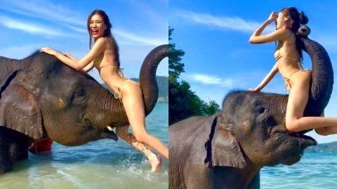 สาวขี่งวงช้าง สุดท้ายถึงกับหน้าคว่ำ