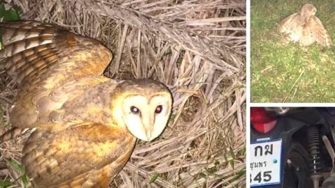 หนุ่มขี่มอเตอร์ไซค์ชนนกจนปีกหัก พอจอดรถลงไปดูรู้ว่าเป็นนกแสก ถึงกับผวา