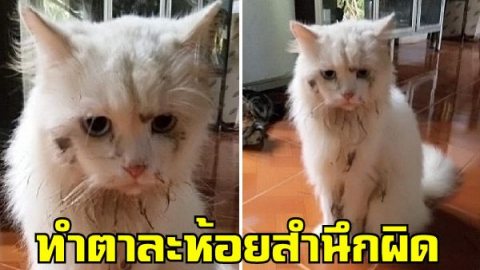 สาวกลับจากทำงานเจอน้องแมวนั่งทำตาละห้อย สำนึกผิดที่แอบไปเล่นโคลนจนเละเทะ