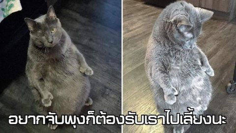 เหมียวไร้บ้านโชว์ยืนอ้วนพุงพลุ้ย เรียกร้องความสนใจจนทาสแมวหลง รับไปเลี้ยงดูบูชาอย่างดี