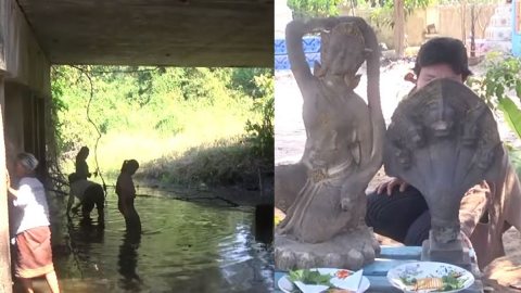 ชาวบ้านเเตกตื่น เจอวัตถุโบราณโผล่ขึ้นกลางลำห้วย