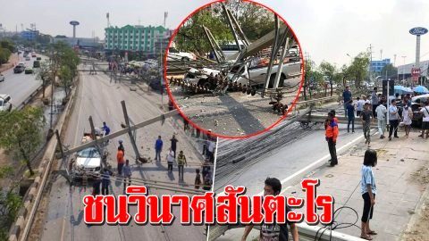 ชนยับ เสาไฟแรงสูงล้ม 15 ต้น รถพังนับ 10 คัน