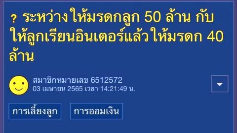 ระหว่างให้มรดกลูก 50 ล้าน กับ ให้ลูกเรียนอินเตอร์แล้วให้มรดก 40 ล้าน
