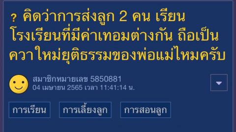 คิดว่าการส่งลูก 2 คน เรียนโรงเรียนที่มีค่าเทอมต่างกัน ถือว่า "ยุติธรรม"ไหม