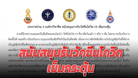 5 องค์กรวิชาชีพ สนับสนุนรับวัคซีน โควิด-19 เข็มกระตุ้น