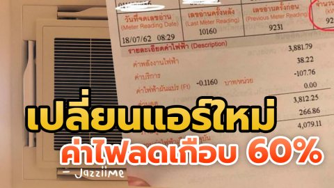 สาวแชร์วิธีประหยัดค่าไฟ ก็เปลี่ยนแอร์ใหม่ไปเลย ค่าไฟลดเดือนละ 6 พันบาท