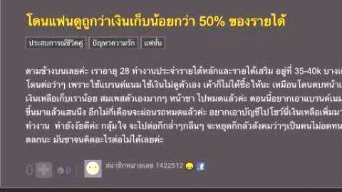 โดนแฟนดูถูกว่าเงินเก็บน้อยกว่า 50% ของรายได้