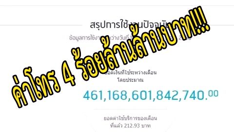 อะเมซซิ่ง!! สาวโวย มียอดใช้จ่ายมือถือเป็นจำนวนเงิน 461,168,601,842,740 บาท