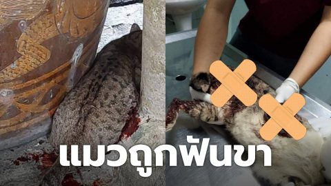 สุดสงสาร! แมวโดนฟันขา ทิ้งไว้โพรงหญ้า ดิ้นกระเสือกกระสน มาขอความช่วยเหลือ
