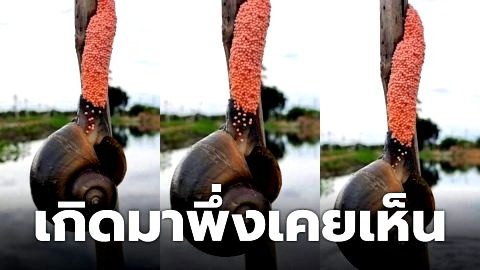 เกิดมาเพิ่งเคยเห็น "หอยเชอรี่สีทอง" กำลังวางไข่