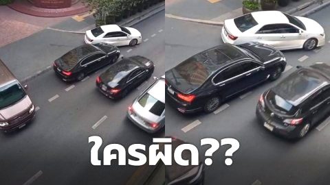 ใครผิด? คันขาวออกมาครึ่งลำแล้ว คันดำไม่ยอม จะไปให้ได้ บีบแตรกันลั่นถนน