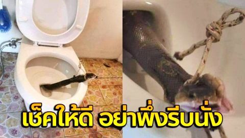จ๊ะเอ๋! เตือนภัย เข้าห้องอย่าพึ่งรีบนั่ง ระวังเจอน้องงูโผล่คอห่านทักทาย