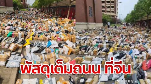 สภาพถนนที่จีนวันนี้ พัสดุเยอะ จนล้นออกมาเต็มถนน