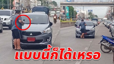 แบบนี้ก็ได้หรอ เมื่อหนุ่มจอดรถกลางถนน แล้วมาเช็ดรถป้ายแดงชิวๆ