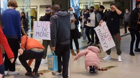 หนุ่มลองใจ ถือป้ายให้เลือก "เงิน" หรือ "ดอกกุหลาบ" สุดท้ายคนเลือกแต่สิ่งนี้!!