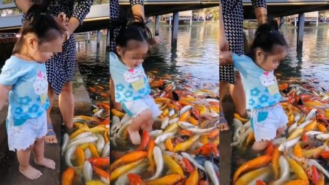 แม่สอนลูก เอาตีนจุ่มในบ่อปลา แบบนี้ก็ได้หรอ?