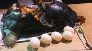ขับรถทับเต่าแม่ลูกอ่อน กู้ภัยถึงกับเศร้า! เก๋งซิ่งปาดหน้าเหยียบแม่เต่าคาตา ไข่ทะลัก