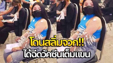 สลิ่มจวก "ทราย เบญจพร" ไปฉีดวัคซีน VVIP ชัดๆ ได้ฉีดเต็มแขน
