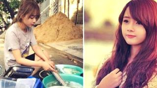ชาวเน็ตแชร์ว่อน!! แม่ค้าสาวสวยลูกกตัญญู สู้ชีวิต นั่งล้างจานโดยไม่ห่วงสวย