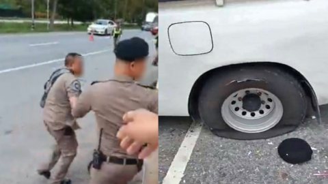 ภาพล่าสุด ดาบอ้วน หลังยางรถกระบะบรรทุกพริก ระเบิดใส่