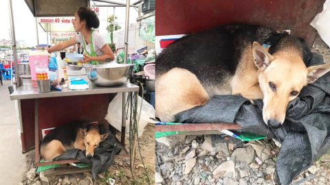 สุนัขจรไม่มีใครสนใจ สุดท้ายพบคนใจดี ขออาศัยกับแม่ค้าขายราดหน้า
