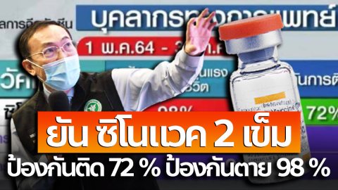 เปิดข้อมูลประสิทธิภาพวัคซีน! สธ.แถลงยืนยัน ซิโนแวค 2 เข็ม ป้องกันติด 72 % ป้องกันตาย 98 %