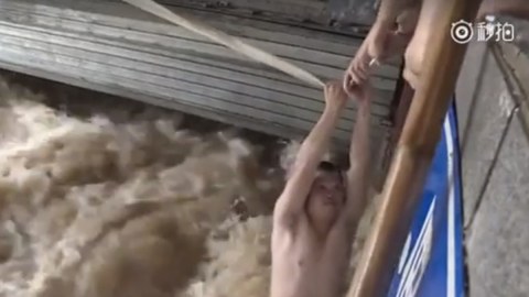 ระทึก! ช่วยชีวิตคนงานในโรงรถหลังมวลน้ำไหลท่วมฉับพลัน ที่จีน