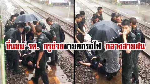 ชื่นชม รด. กรูช่วยชายตกรถไฟ กลางสายฝน