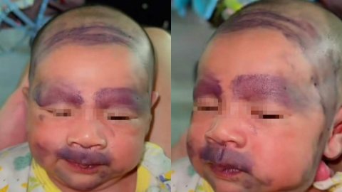 เมื่อเเม่กลัวลูกไม่มีคิ้ว ก็เอาดอกอัญชันทาไปเลยทั้งหน้า