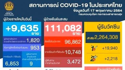 ไทย พบผู้ติดเชื้อใหม่ 9,635 ราย