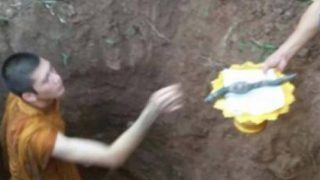 พระหนุ่มนั่งทางในเจอกริชฤาษีโบราณ งานนี้เซียนหวยได้เลขเพียบ