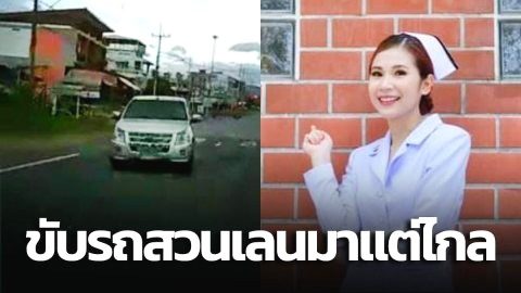 เปิดคลิปนาที! พยาบาลสาว กรี๊ดสนั่น รถกระบะไม่ทราบทะเบียน ขับรถสวนเลนมาแต่ไกล
