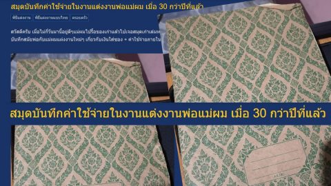 ลูกชาย อ่านสมุดบันทึก พิธีเเต่งงานของพ่อเเม่