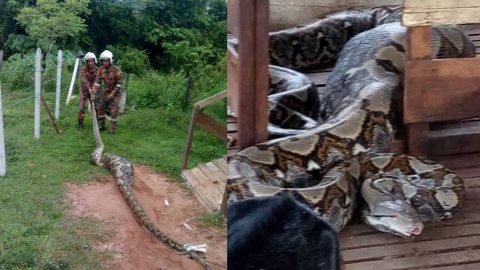 งูยักษ์นอนนิ่งเพราะกินอิ่มมาก