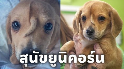 นาร์วัล ลูกสุนัขถูกทิ้ง เจ้าของฉายา “สุนัขยูนิคอร์น” เพราะมีหางจิ๋วงอกที่หน้าผาก