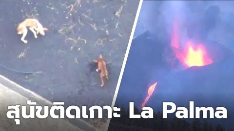 สเปน: ใช้ Drone หย่อนอาหารให้สุนัข ที่ติดเกาะ La Palma และถูกล้อมรอบด้วยลาวาจากภูเขาไฟ