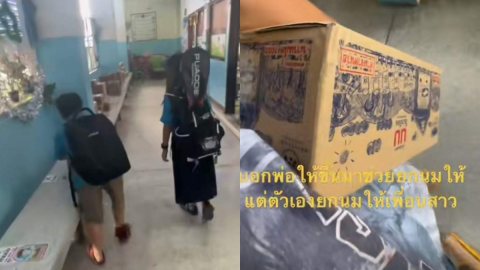 หนุ่มน้อยบอกให้พ่อมาช่วยยกของให้หน่อยเพราะมันหนัก เเต่ตัวเองกลับไปช่วยสาวซะงั้น