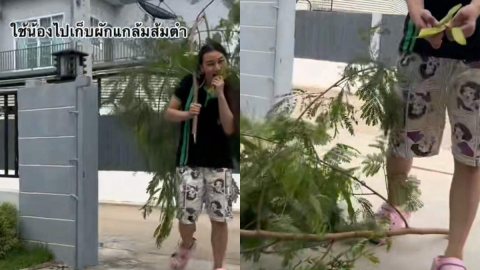 เมื่อให้น้องสาวไปเก็บผักมากินเเกล้มส้มตำสักนิด เเล้วดูที่ได้