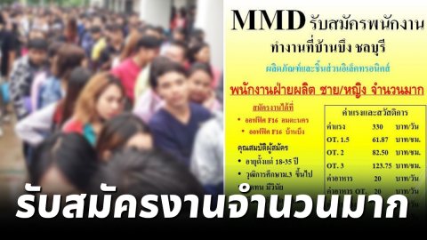 บริษัท MMD รับสมัครพนักงาน ชายและหญิง จำนวนมาก